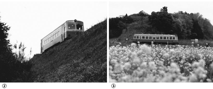 この日は431に出会うことが多く、②は玉造町付近の築堤上を走る鉾田行。③はその列車が鉾田で折り返してきたのだが、これを見ると撮影日は1990年頃の春だったようだ。