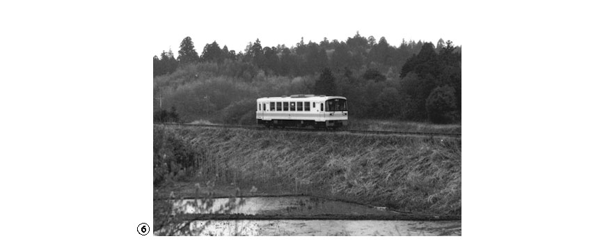 今回も桃浦へ行ってみたが、キハ600型(601)が大きな車体の割に少ない乗客を乗せて走ってきた⑤。キハ600型は元・国鉄のキハ07型式で、半円形の運転台部分が加工され平らな正面になり、車体長20メートルから19メートルになっていた。改造で車体側面にしか面影はないが、第2次大戦以前のガソリンカーが元のディーゼルカー旧・国鉄キハ42500(第2次)由来の車で、おそらくこの当時、現役最古のディーゼルカーのひとつだったと思われる。