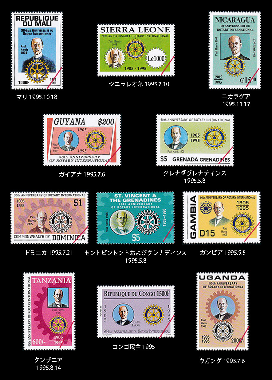 ロータリー創立90周年には、ロータリーとしては切手の発行を呼びかけなかったが、8か国でポールの肖像を描く切手が発行され、90周年を祝った。